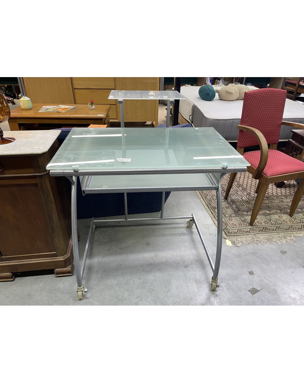 Redéfinissez votre espace de travail avec notre bureau en verre doté d'une étagère spécialement conçue pour votre ordinateur. Sa surface en verre apporte une touche de modernité, tandis que l'étagère offre un rangement pratique pour optimiser votre productivité.